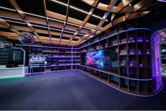 展览序厅包括室外和室内两个区域。室外设置AR虚拟空间联动的艺术发光装置,以及大楼搭载的增强现实等虚实结合的场景。室内通过国产自研的空间音频技术和3D显示技术,展映2022年获奖科幻短视频作品。观众在虚实结合的应用场景下,逐渐步入充满科幻感的未来世界中。