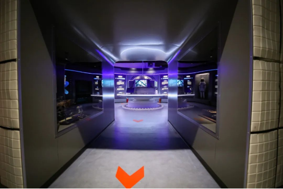 “漫步未来”展厅融合了科幻元素,模拟了人类在地外行星建设基地,并发展人类文明的场景。该展区将未来科幻场景、真人互动拍摄和动画形象动作捕捉巧妙融合,展现了更加逼真的科幻场景。