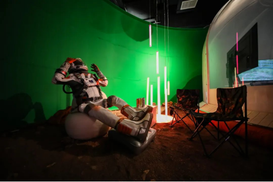 除此之外,还有智能座舱、绿幕虚拟拍摄等展项,为游客模拟异星探索的场景。流浪地球、独行月球等影片的实物道具也将融入场景,共同构建真实而富有沉浸感的展陈氛围。