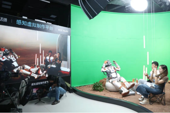 在展厅内,面向影视拍摄创作,萨摩虚幻、新奥特、利亚德光电和利亚德演艺4家科幻企业带来的联合展项,采用超高清三维渲染引擎,结合三维缝合、动作捕捉、前景植入技术等技术,打造沉浸式全景仿真空间,满足科幻作品中真实与虚拟合成的拍摄需求。