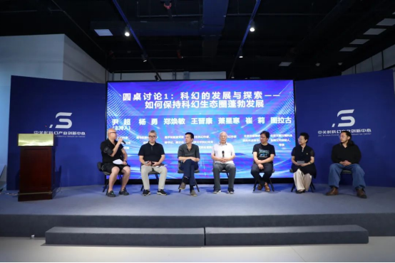 随后,王晋康、郑焕敏、萧星寒、崔莉、图拉古、杨勇六位嘉宾以“科幻的发展与探索——如何保持科幻生态圈蓬勃发展”为主题展开了圆桌讨论。