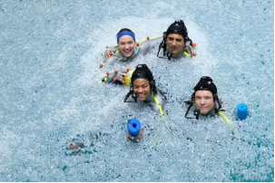 导演卡梅隆与演员在水箱中拍摄《阿凡达2:水之道