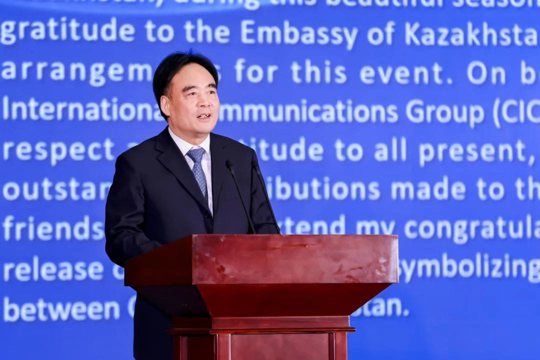 哈萨克斯坦驻华大使馆公使衔参赞阿斯卡尔·沙尔卡尔巴耶夫、中国外文出版发行事业局副局长陆彩荣、中国国际青年交流中心副主任贾铁松出席会议并致辞。