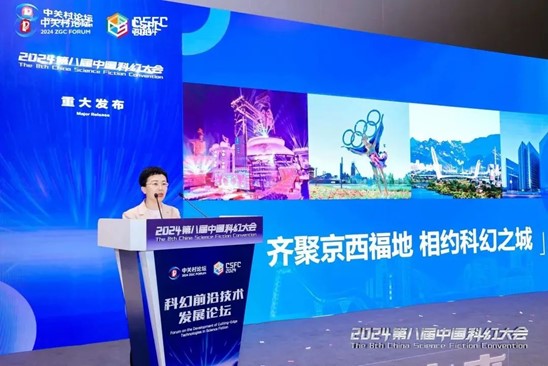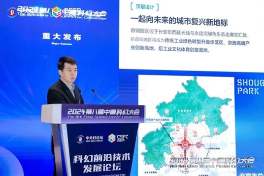 活动中,北京市石景山区人民政府党组成员、副区长李文化发布石景山区促进科幻产业发展行动计划(2024—2025)。发布中提到,石景山区坚持以科技创新推动产业创新,以产业创新助力区域转型,加快发展新质生产力。2023年,石景山区全区地区生产总值同比增长7%,其中数字经济占比超过51%。自2020年中国科协和北京市签署战略合作协议以来,石景山区始终坚持以中国科幻大会为媒,全力构建政策体系,加快推动科幻企业集群成势。下一步,将坚定不移贯彻新发展理念,持续优化科技与科幻融合互促、创新协同的产业生态,到2025年底,在科幻产业创新发展、生态体系构建、提升品牌影响力等方面形成新的突破,建设更高水平的创作交流和产品开发平台,打造具有国际影响力、产业引领力和经济带动力的科幻产业集聚区。