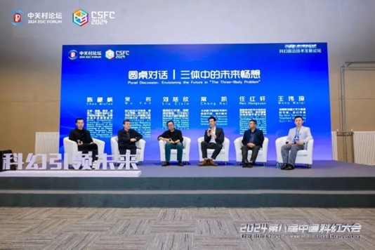 著名科幻作家、雨果奖获得者刘慈欣参与了最后一场圆桌讨论。吴岩、常凯、王玮琦与国家纳米科学中心科技成果处处长、纳米领域知名科普作家与学者任红轩参与讨论。作家、编剧、翻译、策展人、中国作协科幻文学委员会副主任、中国科普作协副理事长陈楸帆主持圆桌会议。刘慈欣在《三体》构想了多种未来科技和科幻畅想,以三体为模板,嘉宾们进行了讨论,畅聊了这些技术的可能性,并对科幻未来与科技未来的发展方向进行畅想。