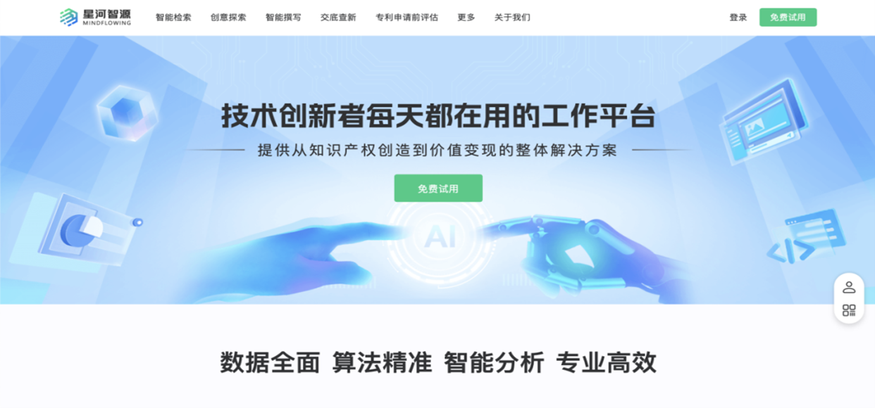星河智源AI+知识产权大数据创新平台,依托前沿大模型技术,实现专利的智能检索、智能撰写、智能评估、智能管理与智能分析等多维度产品功能,为科创企业提供知识产权全生命周期解决方案,并为新质生产力加速发展提供有力支撑。